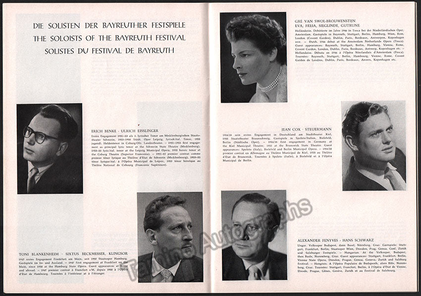 Bayreuth 1956 - Booklet Personnel Bayreuth Festival Guide
