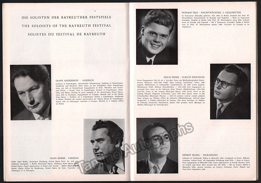 Bayreuth 1958 - Booklet Personnel Bayreuth Festival Guide