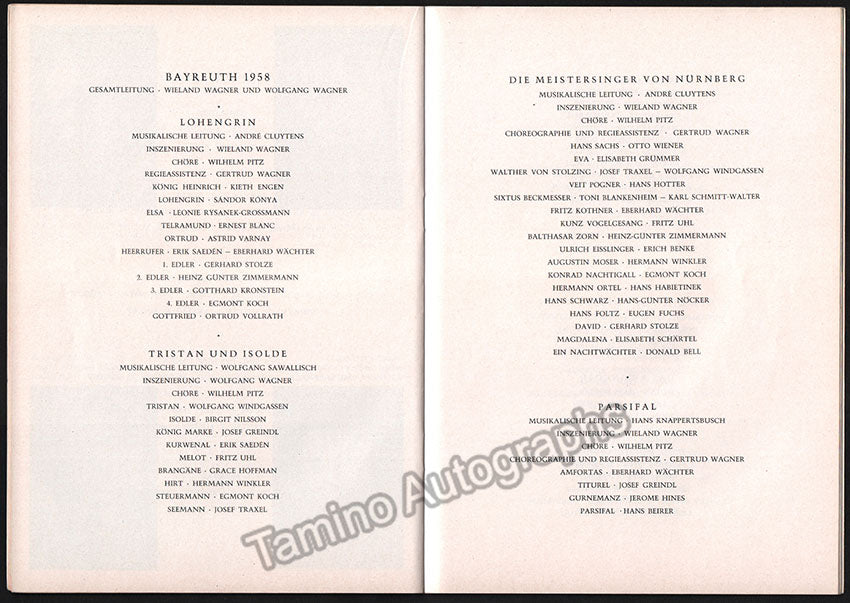 Bayreuth 1958 - Personnel of the Bayreuth Festival Guide