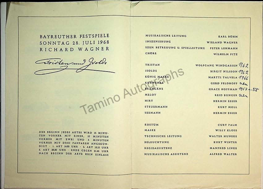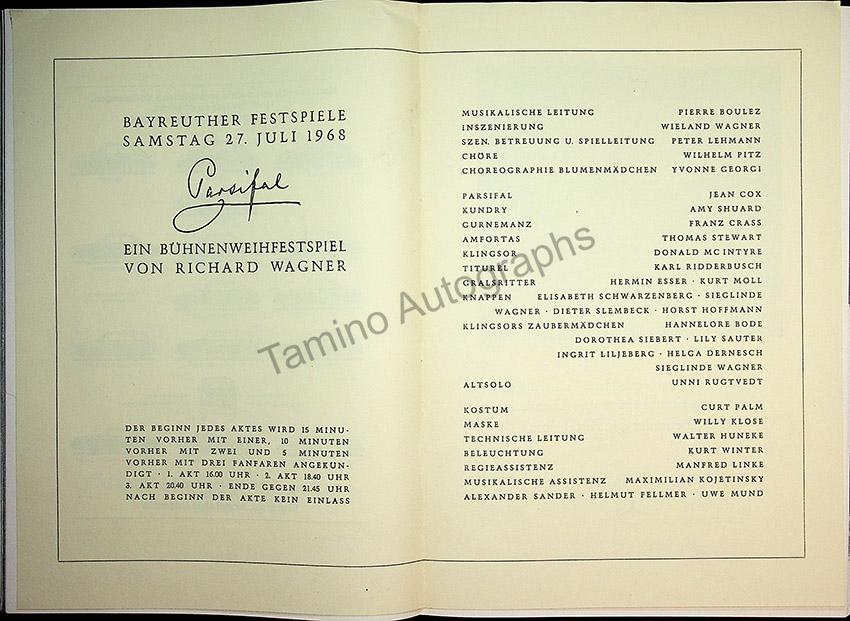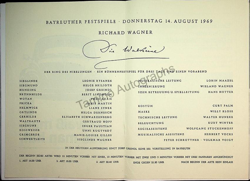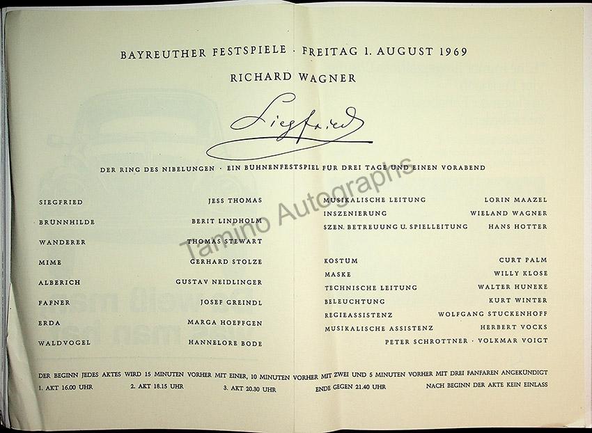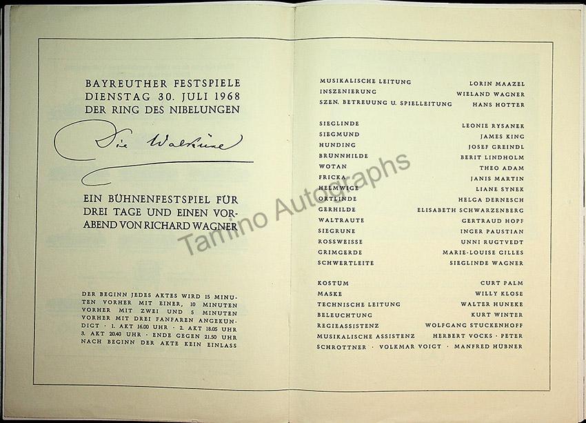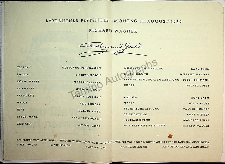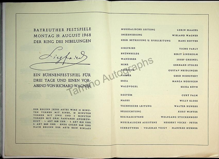 Full program for an opera, Bayreuth Festival, each one has 2 pieces: a program inset and a booklet with approx. 50 pages including articles (in German) and black and white photos.