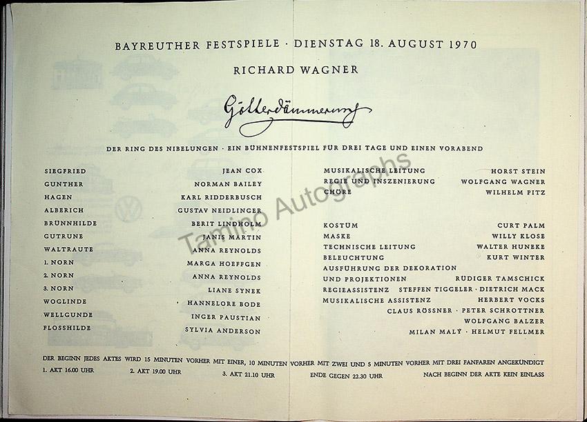Bayreuth Festival Programs 1968-1971 (Various Programs)