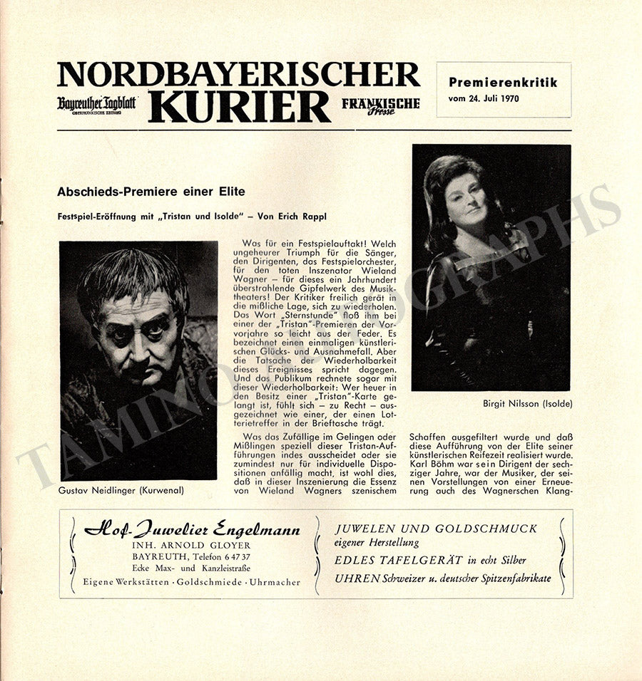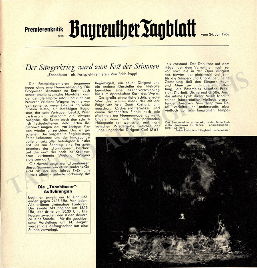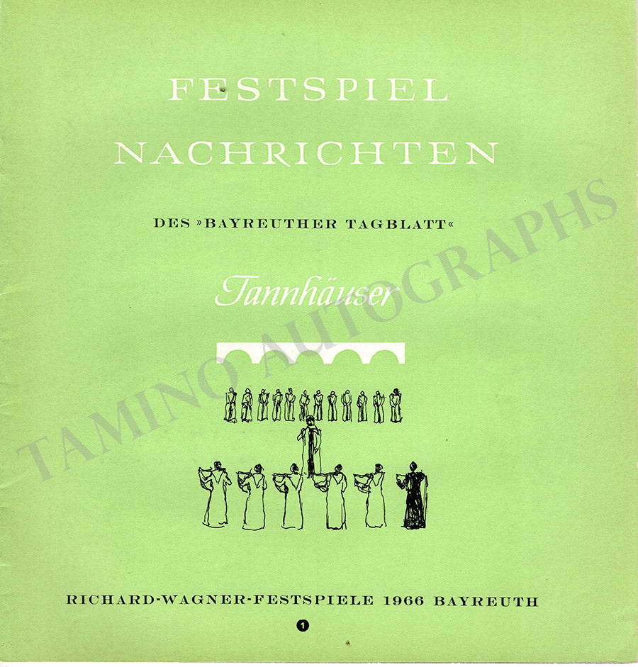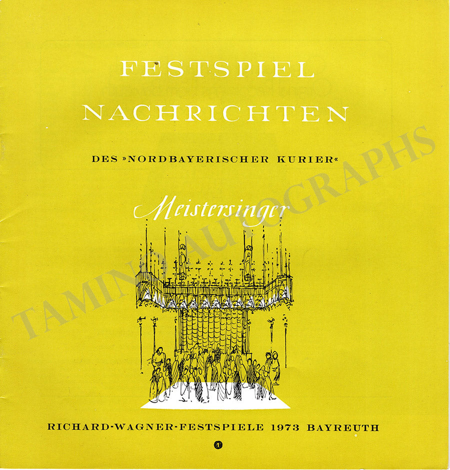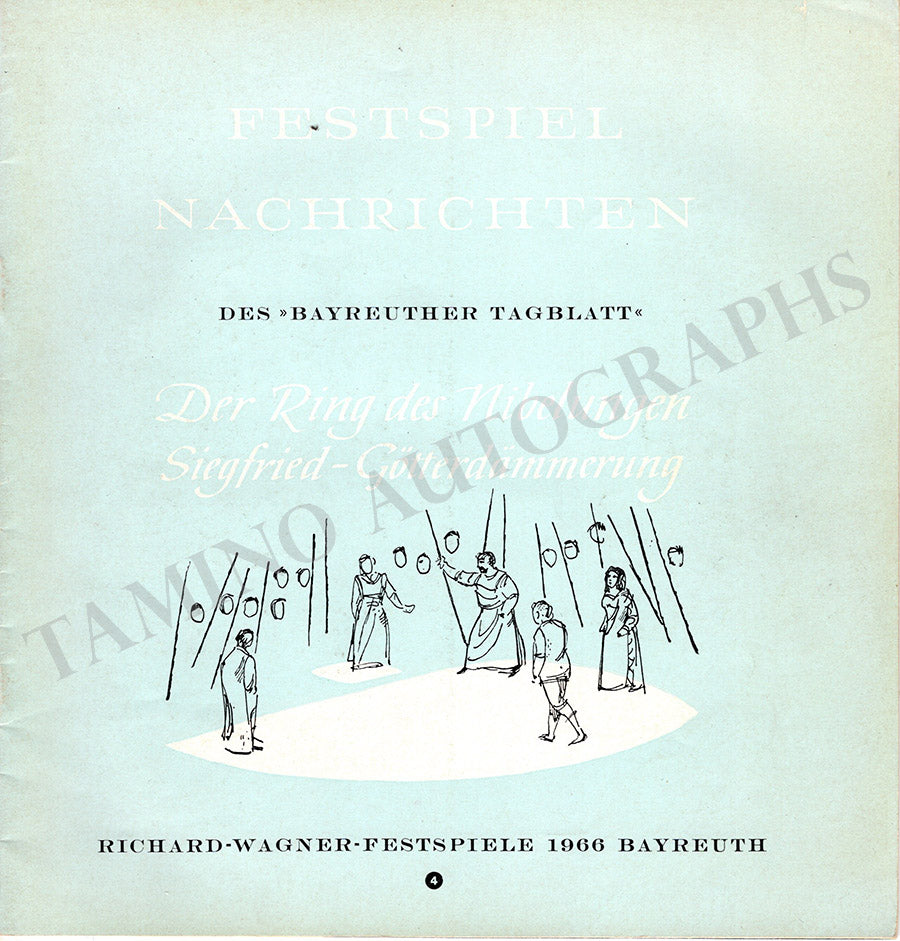 Beautiful collection of 6 magazines "Bayreuth Nachrichten" with many articles in German and photographs issued by the Bayreuth Festival for the years 1966 (2), 1970 (2), 1973 (1), and 1974 (1).