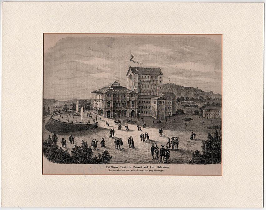 Original print from the period of inauguration of the Bayreuth Theater, matted to a total size of 14 x 11 inches , print is 9.5 x 7.5 inches (visible window size), in excellent condition.