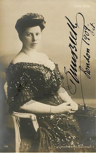 Dutch soprano (1873-1953).  Signed photo postcard, shown as herself, dated in 1909, London. Minor silvering over lower left border. Size 3.25 x 5.5 inches.