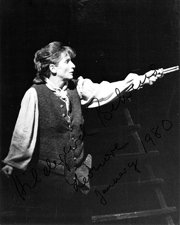 Signed photograph, shown in the title role of Beethoven's Fidelio, dated in 1980. Photo by James Heffernan, Metropolitan Opera, New York. Size is 8 x 10 inches, mounting traces on verso, otherwise in excellent condition.