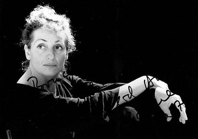 Fine black-and-white photograph signed by her; ink-stamped on verso by photographer Oda Sternberg (Munich). Size is 4.2 x 5.75 inches, in excellent condition.