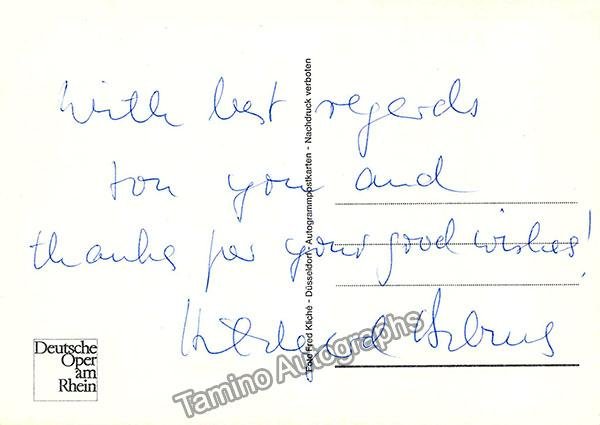 Signed photograph, shown in the title role of Beethoven's Fidelio. Stamped on verso by photographer Hans-Joachim Lieske, Hamburg. Size is 4 x 5.75 inches, in excellent condition.