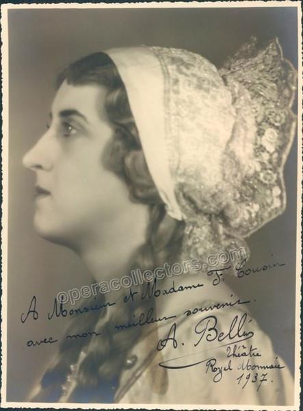 Belgian soprano (1911-2004).  Signed photo, shown as Eva in Die Meistersinger, 6.5 x 9 inches, inscribed, dated in 1937. In excellent condition, stamped on verso by photographer Henri Vermeulen, Brussels