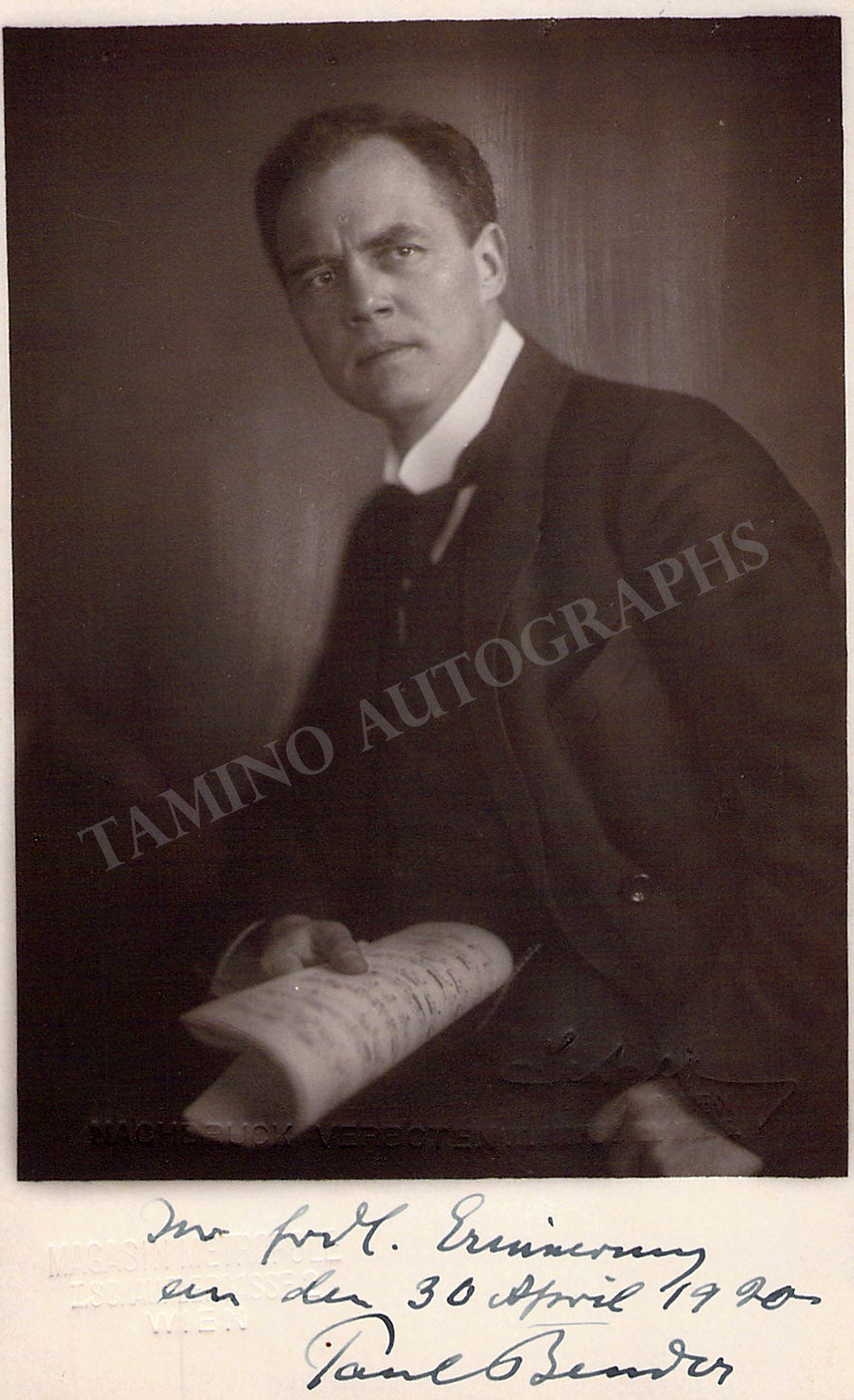 Signed postcard photograph, shown as himself, inscribed and dated in 1920. Blind stamped on front by Magasin Metropole photo studio and by photographer Setzer, Vienna. Size is 3.25 x 5.25 inches, in excellent condition.
