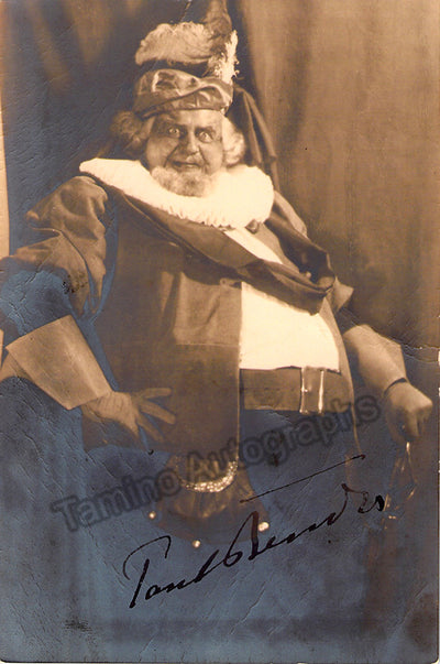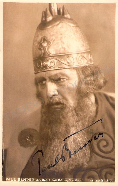 Signed postcard photograph, shown as King Marke in Wagner's Tristan und Isolde. Stamped on verso by photographer Hanns Holdt, Munich. Size is 3.5 x 5.5 inches, in excellent condition.