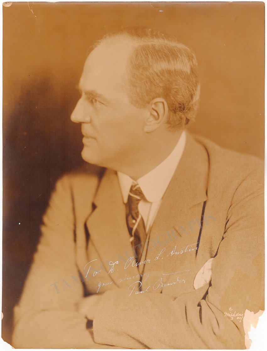 Signed postcard photograph, shown as himself, inscribed and dated in 1920. Blind stamped on front by Magasin Metropole photo studio and by photographer Setzer, Vienna. Size is 3.25 x 5 inches, in excellent condition.