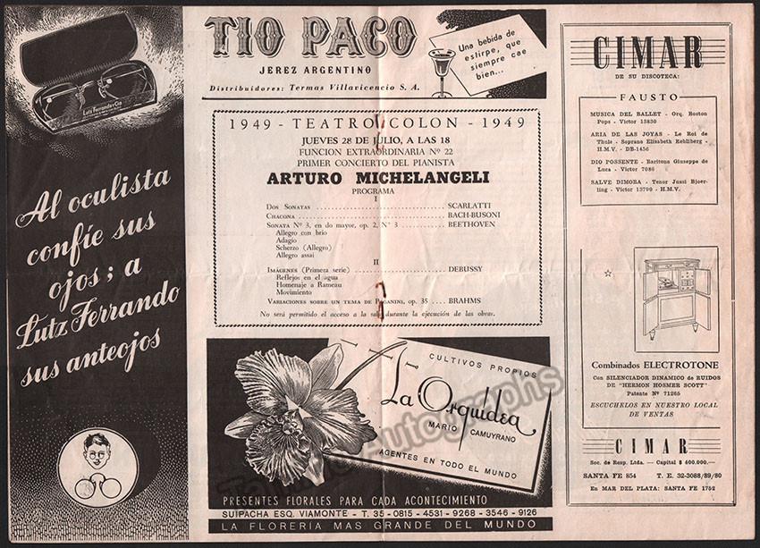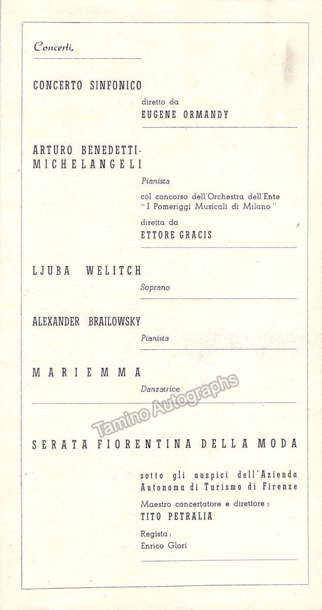 Benedetti Michelangeli, Arturo - Program Lot 1943-1961