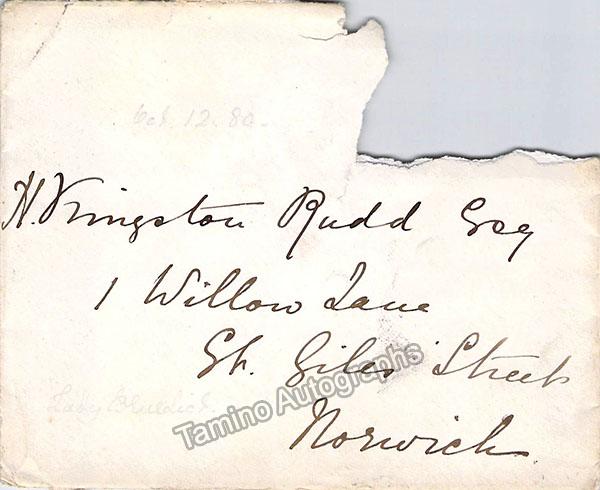 German composer and conductor (1804-1885), resident in England for most of his career. Two items: autograph letter and autograph note signed, each one dated in 1880, in English about personal matters. Note is one page, letter is in 3 pages, each page is 4.5 x 7 inches, letter has loss of paper on 4 corners. Also included is a handwritten envelope. (not sold separately)