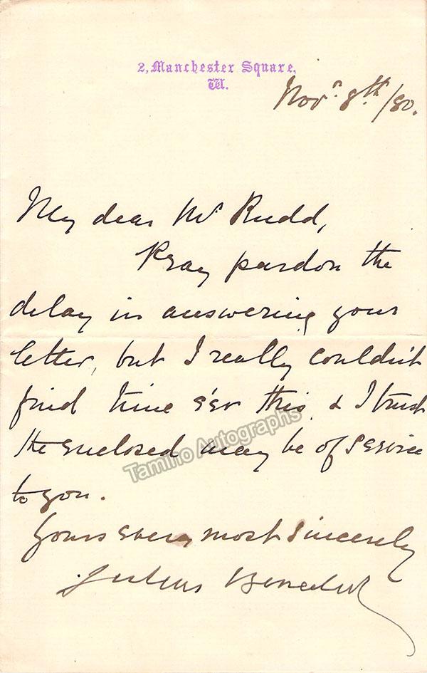 Benedict, Julius - Autograph Letter & Note Signed 1880
