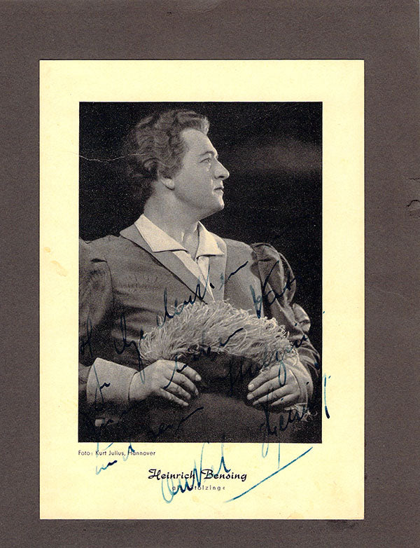 German tenor (1911-1955), signed photograph, shown as Walter von Stolzing in Wagner's Die Meistersinger, inscribed. Photo by Kurt Julius, Hannover. Photo size is 4 x 5.75 inches mounted on soft cardboard, total item is 5.5 x 7 inches, in excellent condition