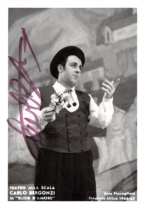 Signed photograph, shown as Nemorino in Donizetti's L'Elisir D'Amore. Photo by Piccagliani, La Scala, Milan. Size is 4 x 5.75 inches, in excellent condition.