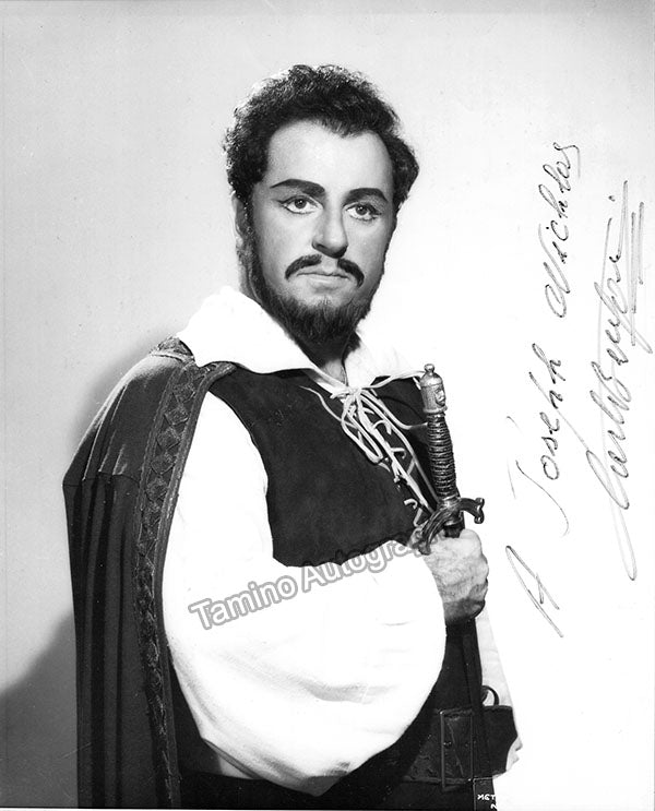 Signed photograph, shown as Don Alvaro in Verdi's La Forza del Destino. Photo by Piccagliani, La Scala, Milan. Size is 4 x 5.75 inches, in excellent condition.
