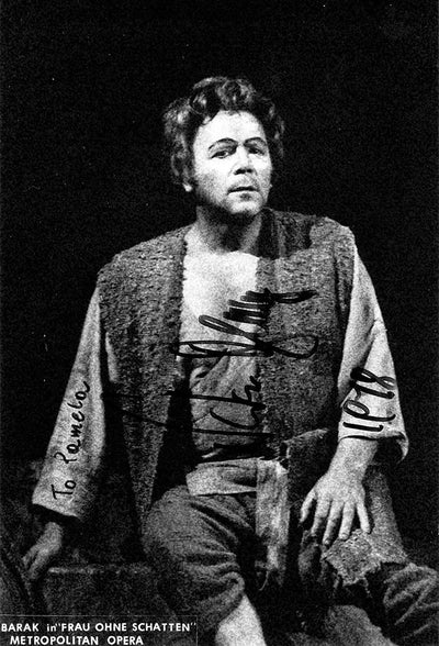 Signed photograph, shown as Barak in Richard Strauss's Die Frau ohne Schatten at the Metropolitan Opera. Stamped on verso by photographer Beth Bergman, New York. Size is 3.75 x 5.75 inches, in excellent condition.