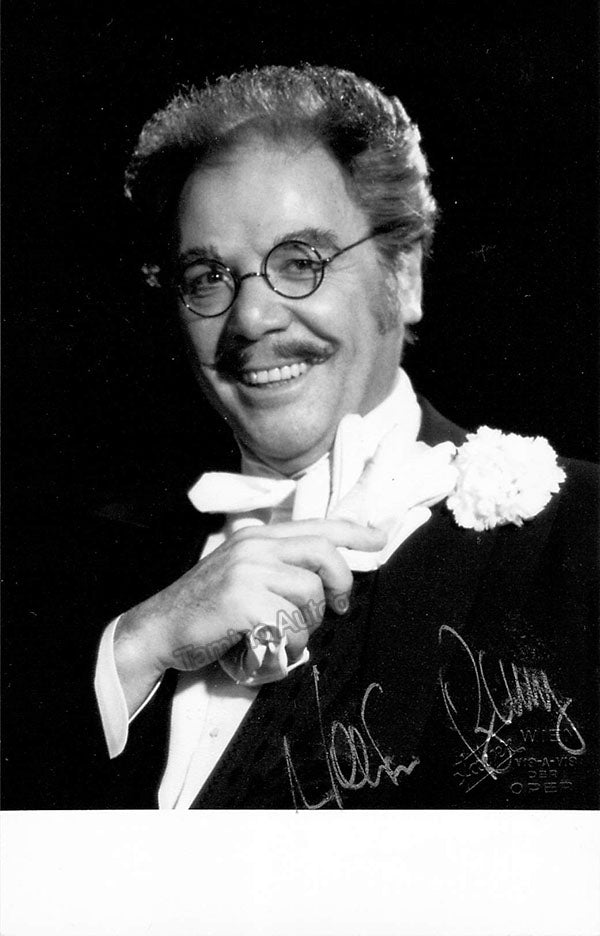Beautiful black-and-white photograph signed by him, shown backstage as Baron Ochs for a production of Strauss' opera Der Rosenkavalier at Teatro Colon (Buenos Aires); photo by Di Toto, 1969. Size is 3.8 x 5.8 inches, in excellent condition.