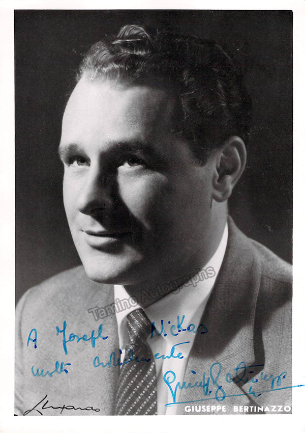 Italian tenor and founder of the West Australian Opera company (?-2018). Signed photograph, shown as himself. Inscribed. Hand signed on front by photographer Luxardo. Size is 4.25 x 5.75 inches, in excellent condition.
