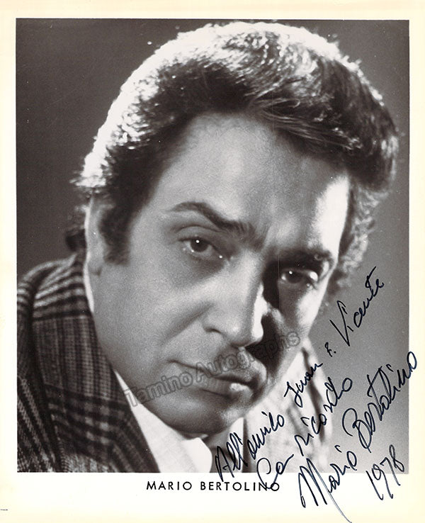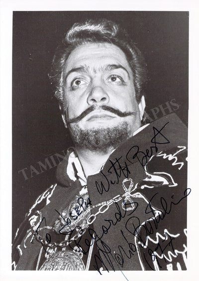 Signed photograph, shown as Ferrando in Verdi's Il Trvoatore, dated in 1977, inscribed. Size is 5 x 7 inches, in excellent condition.