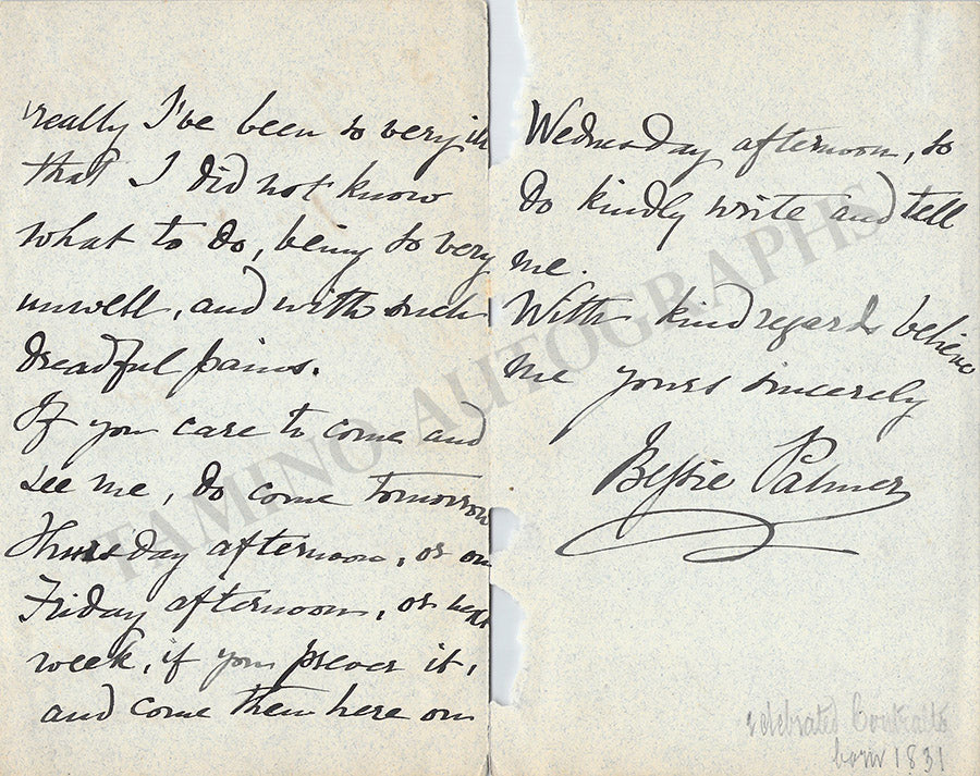 Palmer, Bessie - Autograph Letter Signed 1906 Palmer, Bessie - Autograph Letter Signed 1906