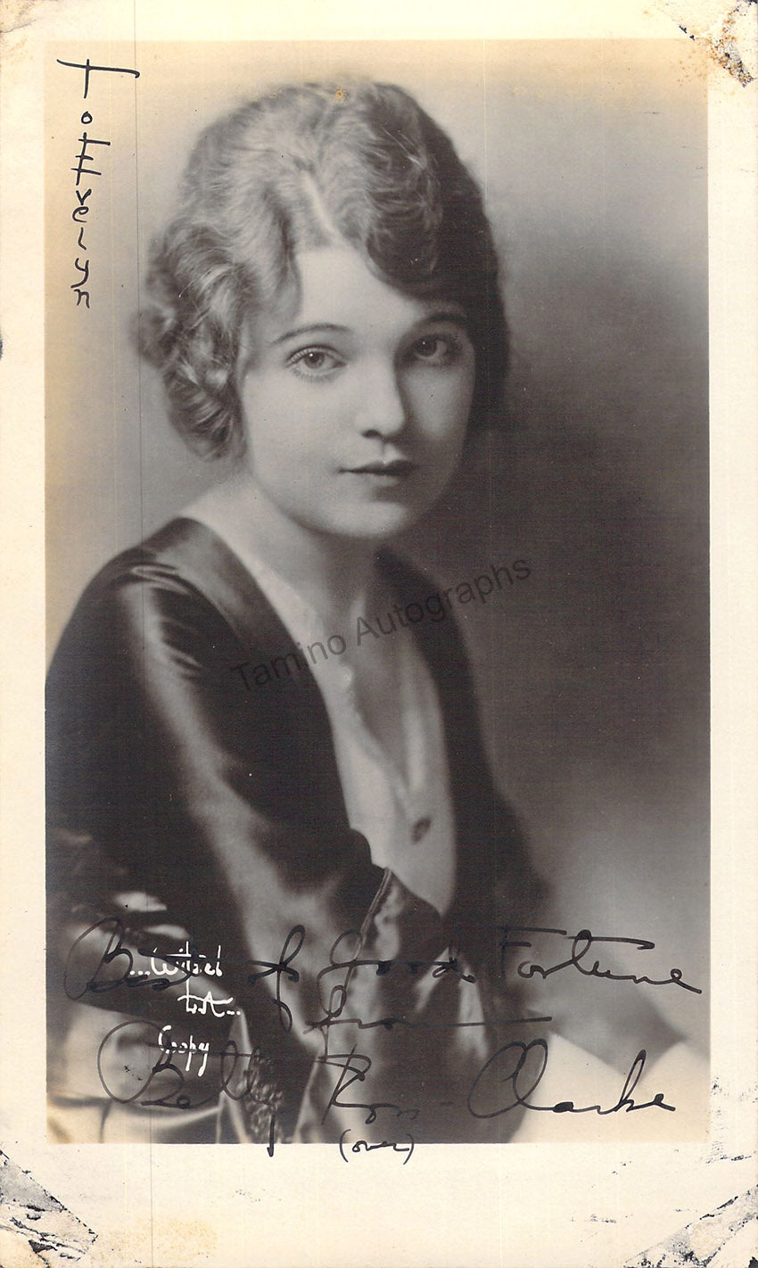 Beautiful black-and-white photograph signed and inscribed by her with a short sentiment, shown young.  Size is 4.8 x 7.9 inches, minor damage caused by photo corner marks in all four corners, handwritten with a long text on verso and initialized by her (not shown).