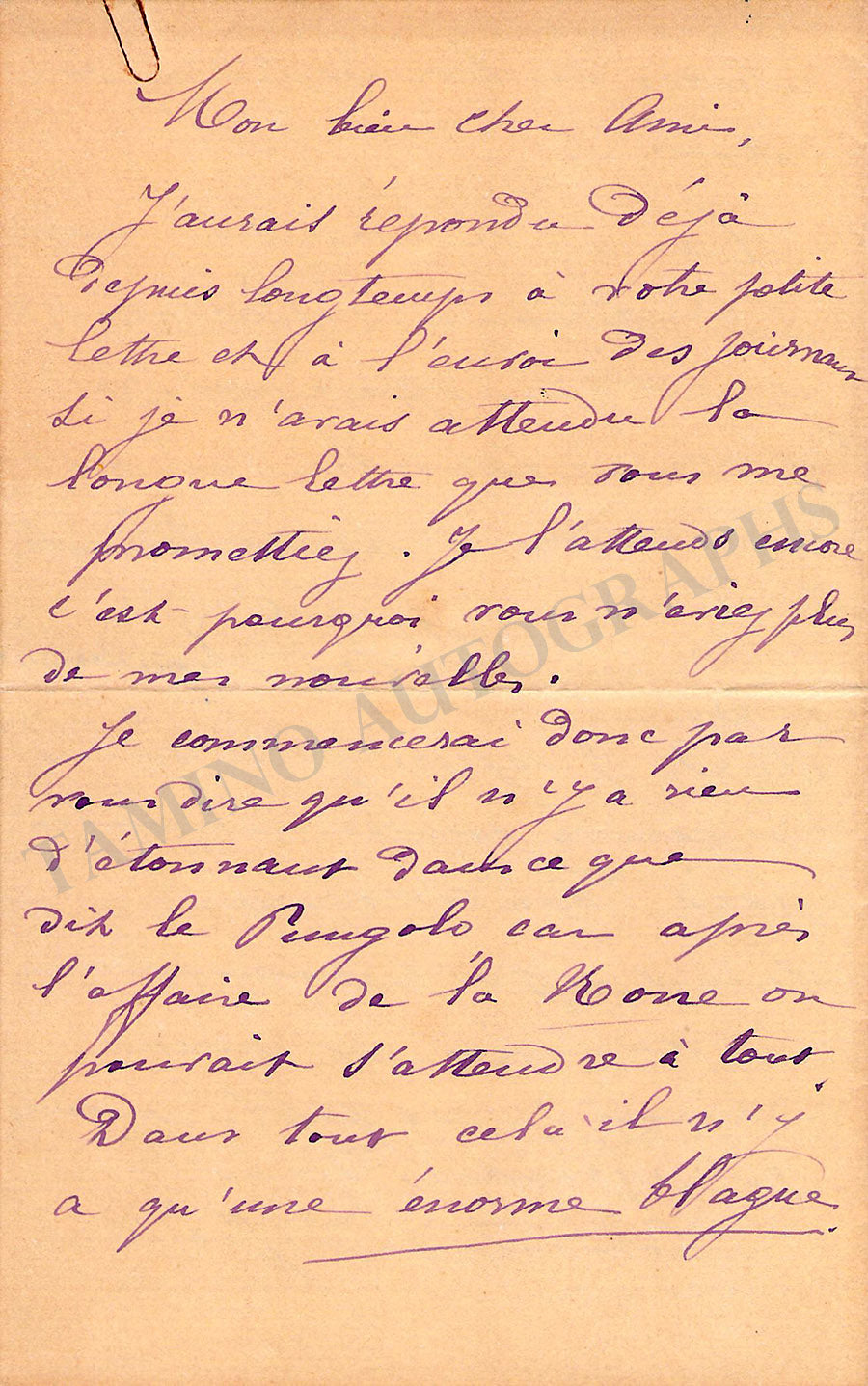 THE "TAMINO AUTOGRAPHS" semi-transparent legend over the pictures shown here does not exist in the actual item.