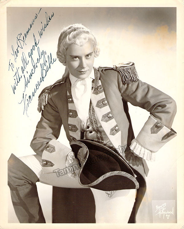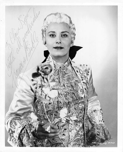 Signed photograph, shown as Cherubino in Mozart's Nozze di Figaro, inscribed. Stamped on verso by Bruno of Hollywood photo studio, Hollywood and New York City. Size is 8 x 10 inches, small creases on edges, otherwise in very good condition.