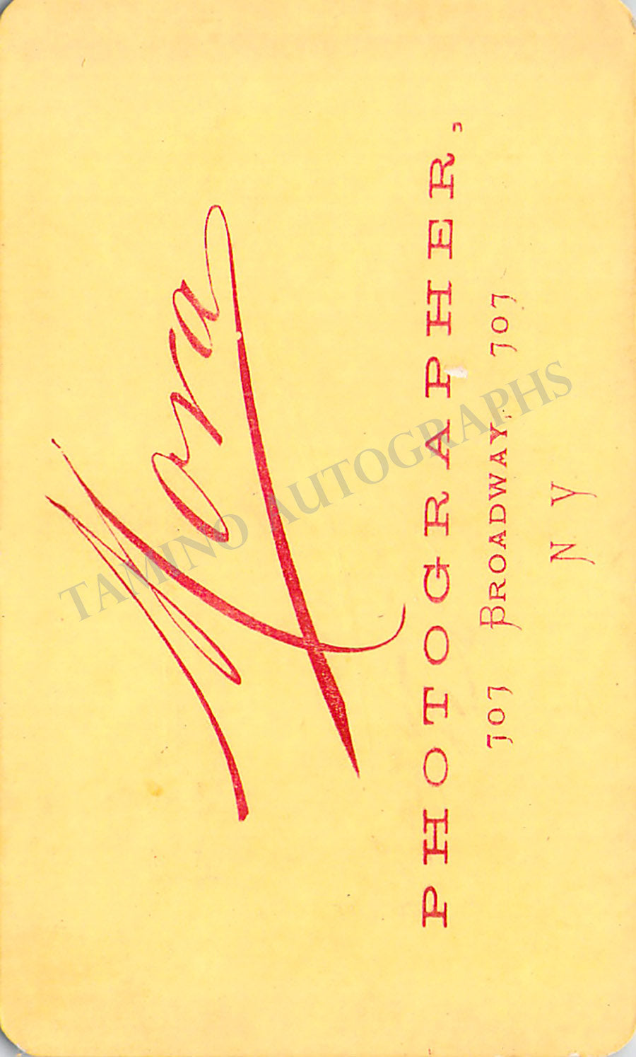 English soprano (1810-1884). Unsigned Carte-de-Visite (CDV) of the soprano, shown as herself, by photographer Mora, New York. Size is 2.4 x 4.1 inches, some tears at the top not affecting the image, otherwise in excellent condition.
