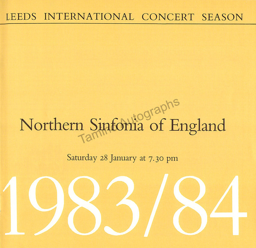 Program for a performance of the American pianist with the Northern Sinfonia of England conducted by Richard Hickox, at Leeds, United Kingdom, on January 28th, 1984, signed by both the pianist and the conductor in their corresponding bio pages.