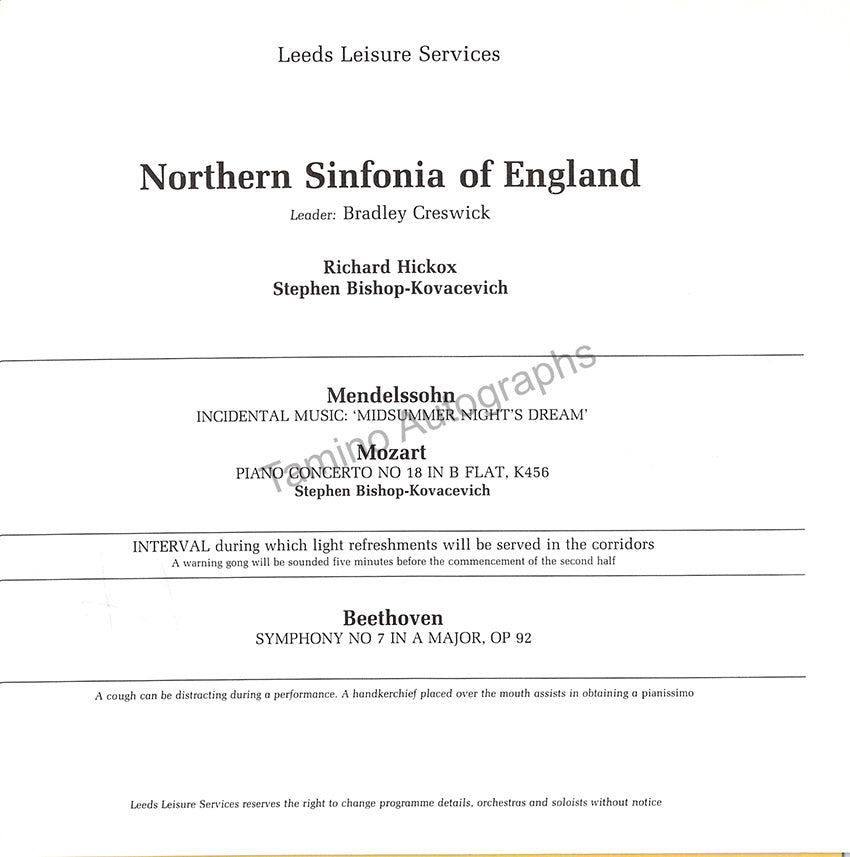 Bishop-Kovacevich, Stephen - Hickox, Richard - Signed Program Leeds 1984
