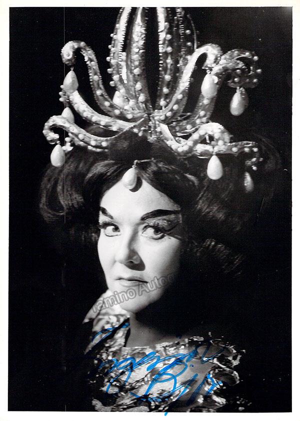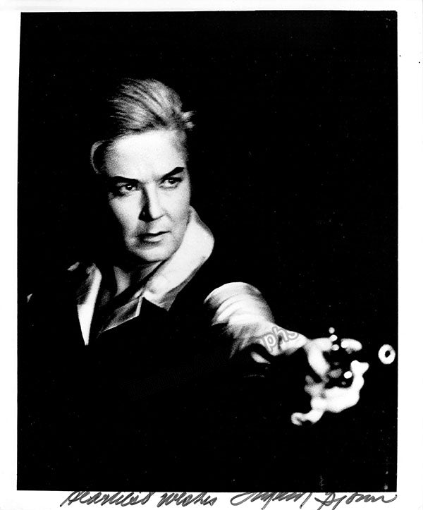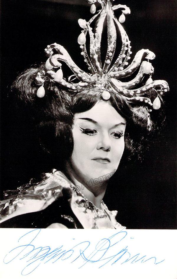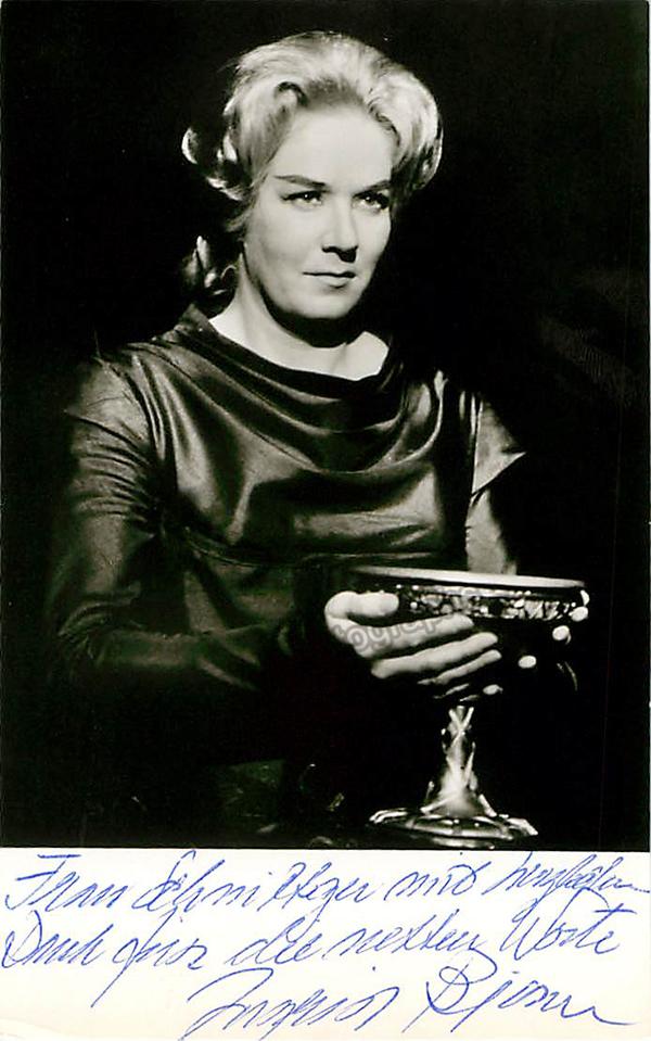 Signed photograph, shown in role, inscribed. Stamped on verso by photographer Sabine Toepffer, Munich. Size is 4 x 5.75 inches, in excellent condition.