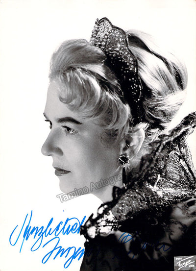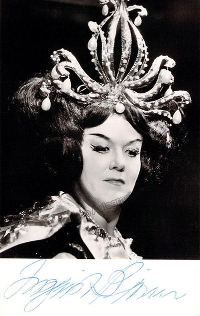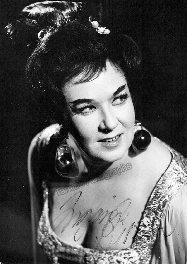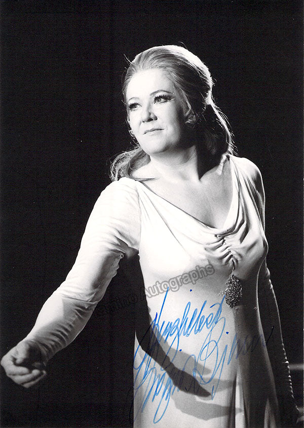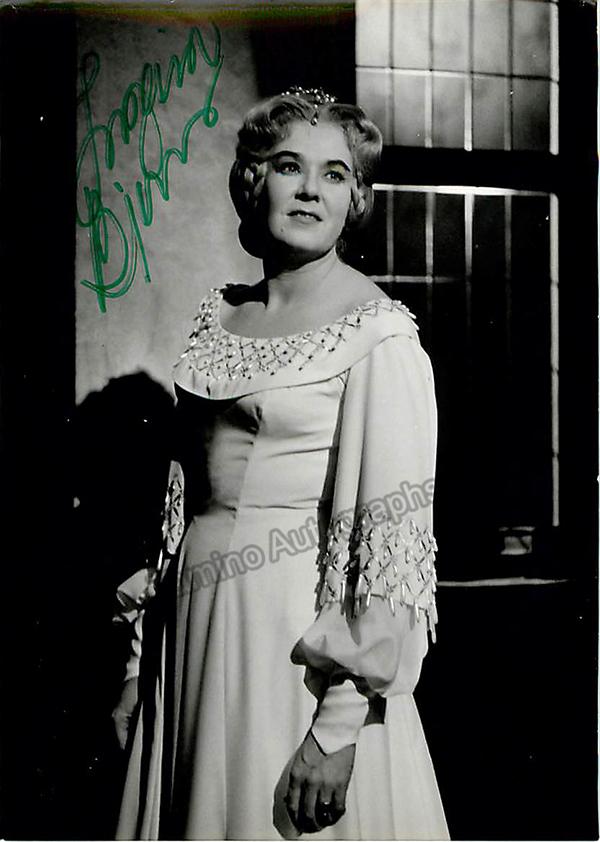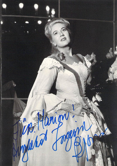 Signed photograph, shown as the Countess in Mozart's Nozze di Figaro. Size is 8 x 10 inches, very small crease on top right, otherwise in excellent condition.
