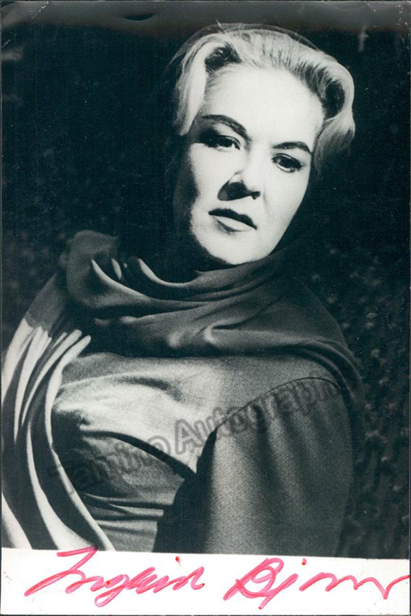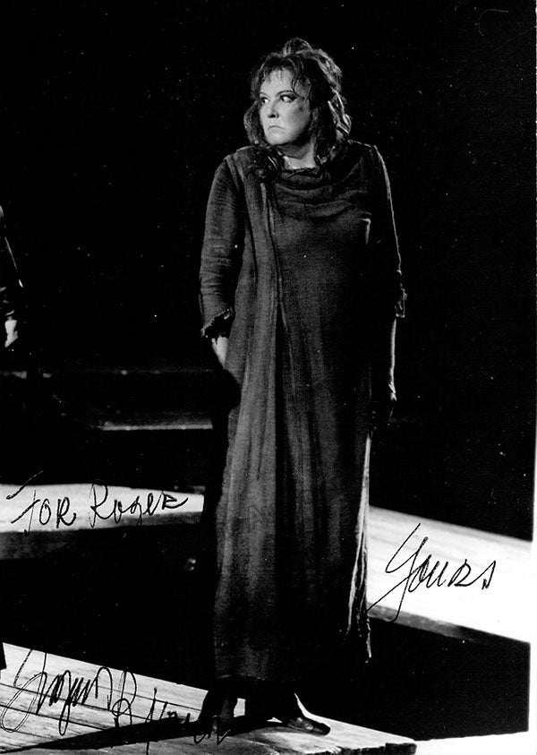 Signed photograph, shown in the title role of Richard Strauss's Elektra, inscribed. Size is 4 x 5.75 inches, in excellent condition.