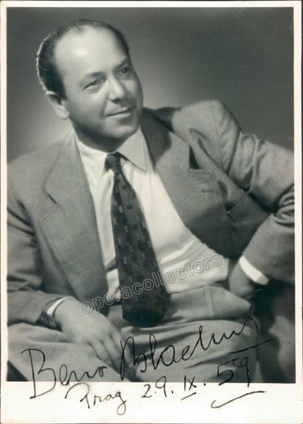 Signed photo of the Czech tenor (1913-1985), stamped on verso by photographer, 4.5 x 6.25 inches, dated in 1959. Photo has a crease over the left, otherwise in perfect condition.