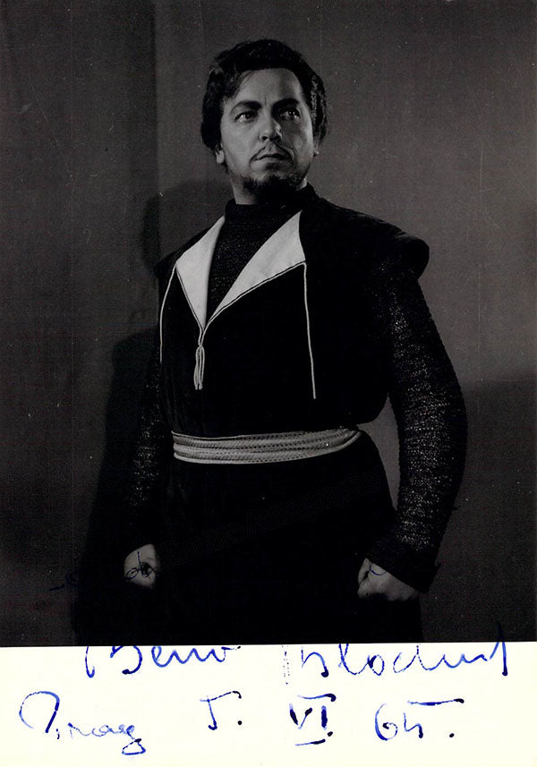 Czech tenor (1913-1985), signed photograph, shown in role in Smetena's Dalibor, dated in Prague in 1964. Size is 4 x 5.75 inches, in excellent condition.