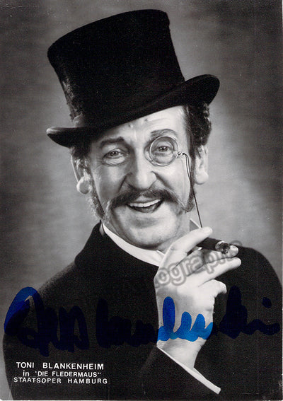 Signed photo, shown in Die Fledermaus in Hamburg. Size is 4 x 5.75 inches.