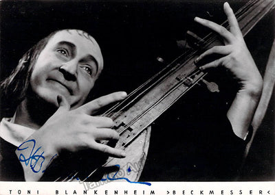 Signed postcard photograph, shown as Beckmesser in Wagner's Die Meistersinger. Size is 4.25 x 5.75 inches, in excellent condition.