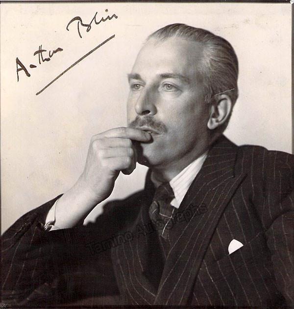 English composer and conductor (1891-1975), whose production includes a variety of genres, including orchestral (he has a well-known cello concerto), film music and ballet. Signed photo, 4.25 x 4.5 inches, mounting traces on verso, otherwise in excellent condition.