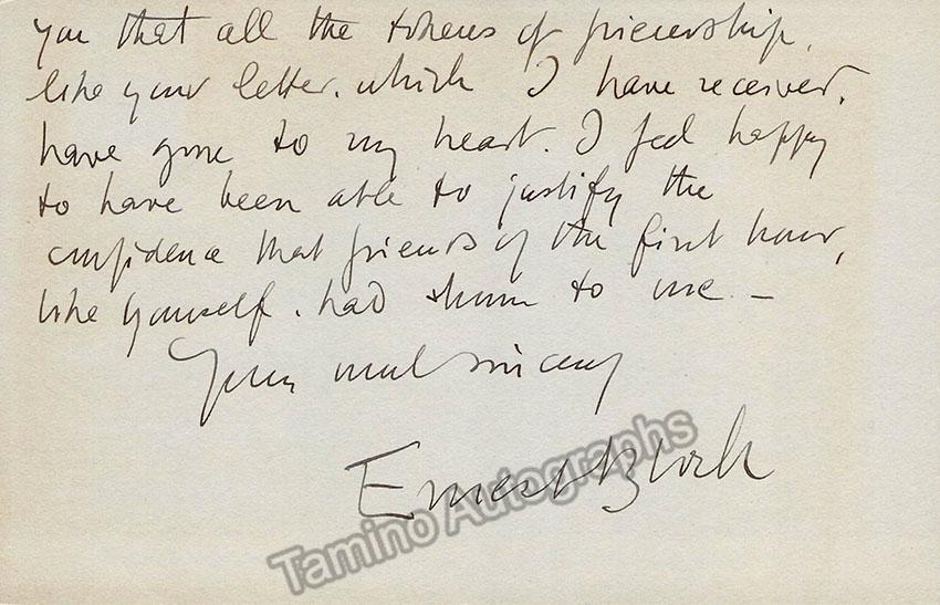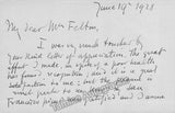 Autograph letter signed and written in English thanking a friend for his letter, dated in 1928; written on both sides of a card.  Size is 6.2 x 4 inches, in excellent condition.