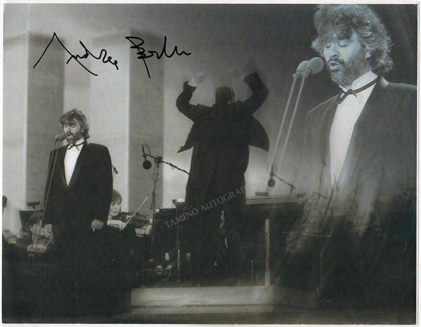 Italian tenor, songwriter, and record producer (b.1958).  Large signed photo shown in concert.  Size is 12 x 9.3 inches, in excellent condition.