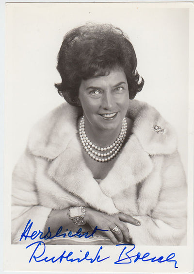 Signed photograph, shown as herself, inscribed and dated in 1957. Stamped on verso by Fayer photo studio, Vienna. Clear and bold signature. Size is 3.25 x 5.25 inches, in excellent condition.