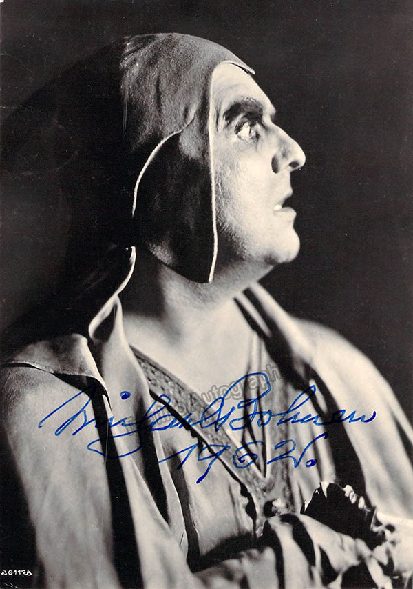 Signed black and white postcard photograph, shown as Gunermanz in Wagner's Parsifal, signed and inscribed by him on verso with a short sentiment, dated in 1914. Size is 3.25 x 5.25 inches, silvering around borders, otherwise in very good condition.