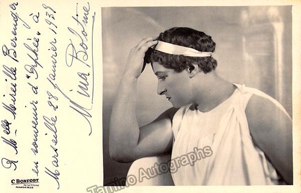 Belgian soprano and mezzo-soprano (1904-1973), signed photo, shown as Orfeo in Gluck's Orfeo et Euridice, signed in Marseilles, dated in 1939. Inscribed. Blind stamped by photographer C. Bonfort, Marseille. Beautiful handwriting and signature. Size is 7 x 4.3 inches, in excellent condition.