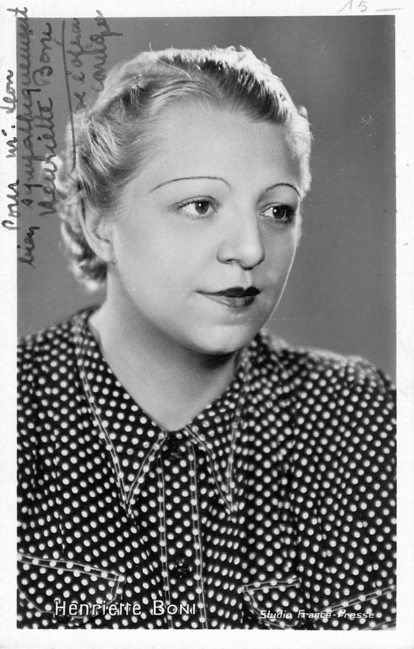 Signed photograph, shown as herself, inscribed. Photo by Studio France - Presse. Size is 3.5 x 5.5 inches, in excellent condition.