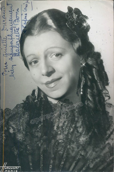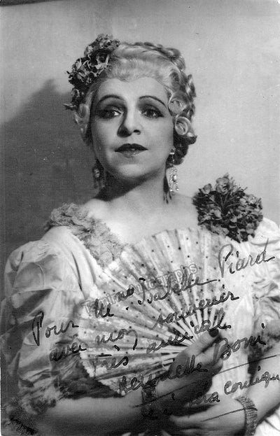 Signed photograph, shown in role, inscribed at the Opera Comique, Paris. Size is 3.5 x 5.5 inches, in excellent condition.