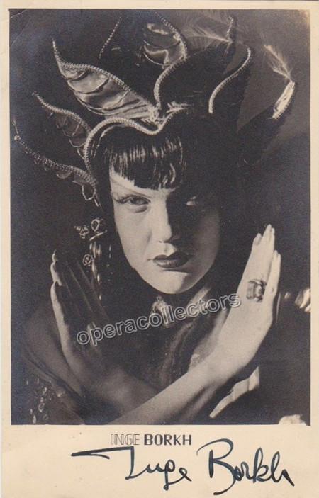 German-born Swiss soprano (1921-2018), Borkh was one of the leading dramatic sopranos of the 1950s and 1960s. Signed photo, shown in unknown role, size is 3.25 x 5.25 inches