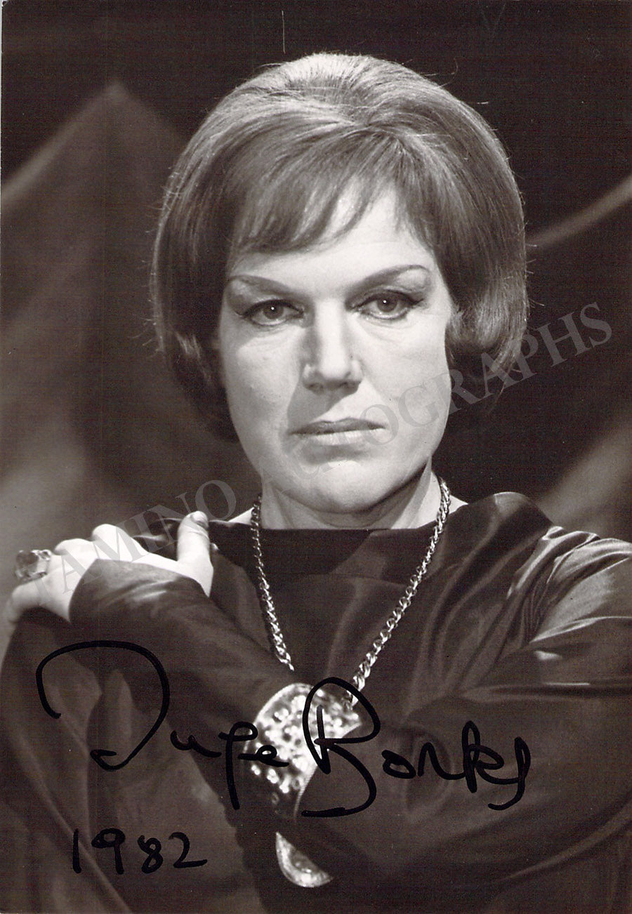 Signed photograph, shown in the title role of Beethoven's Fidelio, inscribed and dated in 1965. Stamped on verso by photographer Rudolf Betz, Munich. Size is 4 x 5.75 inches, in excellent condition.