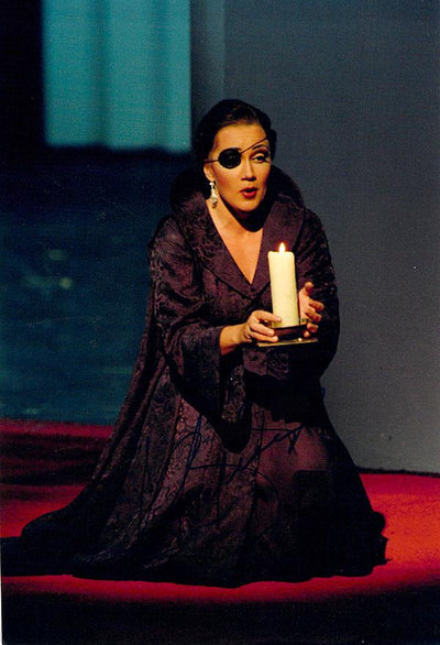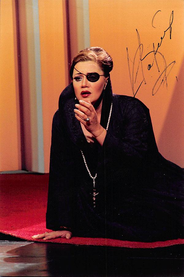 Signed photo, shown as Princess Eboli in Don Carlo at the Salzburg Festival, 2003. Photo by Schaffler and Friese photostudio, Salzburg. Size is 4 x 6 inches, in excellent condition.